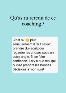 Choisir Emmanuelle, c’est faire le choix d’avoir une coach couteau suisse, avec sa clairvoyance, son talent pour rebondir sur des mots, des silences, ses supports, et je vais m’arrêter là pour ne pas spoiler, mais la team Reconnexion c’est quelque chose !
